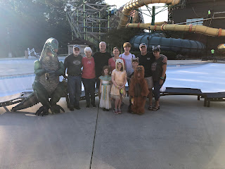 This year, we started our week at Great Wolf Lodge in Williamsburg. Dan's sister, Robin, and her family gave us a gift certificate for Christmas, and we used it to spend a night there. They allow guests to arrive at the waterpark in the early afternoon the day they're checking in, and you can stay all day to play the following day. Their indoor waterpark is pretty amazing! They've got several large waterslides, a wave pool, a wave rider with kneeboards, a huge playground with smaller slides, a toddler splash pad, a lazy river, and hot tubs. Our visit was even more fun since Dan's parents and his brother's family joined us!