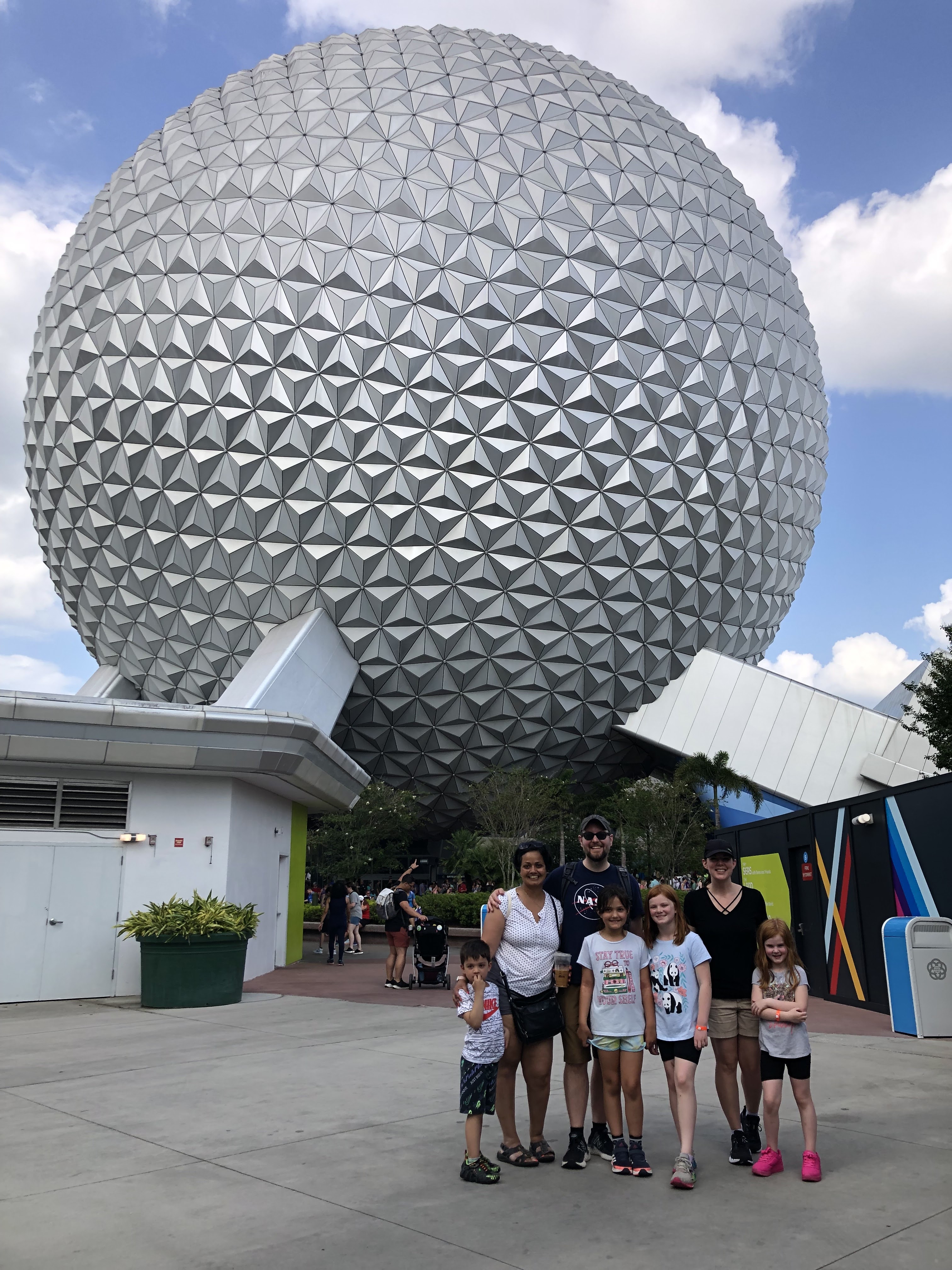 We made it back to Epcot that night just in time for our virtual queue appointment for the brand-new Guardians of the Galaxy ride. Unfortunately, the ride shut down and it took about an hour and a half for us to get on the ride. It's a unique ride since the rollercoaster has cars that spin independently as you fly through Galaxy scenes that are projected on the walls and ceiling. We sat down in line and waited until it was finally running again, and we all LOVED the ride - except for Steve, who wished he could jump off as soon as it started spinning! We really wanted to ride some other Epcot rides, but the park was closed by the time we finally rode Guardians of the Galaxy.